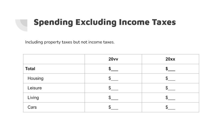 This is our tax return boiled down to its simplest form. What are the major sources of income? How much do we pay in taxes? How much is it as a percentage of our total income?