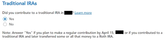We already checked the box for Traditional IRA, but TurboTax just wants to make sure. Answer Yes here.