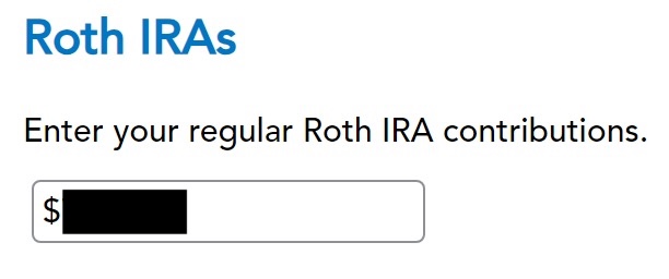 Go to Federal Taxes -> Deductions & Credits -> Traditional and Roth IRA Contributions.