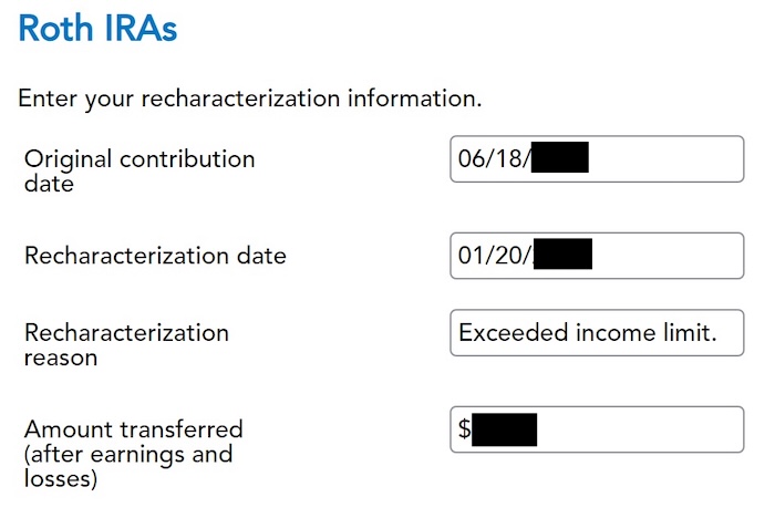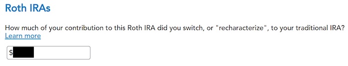 If you recharacterized your 2025 contribution in 2025 and converted in 2025, please follow Backdoor Roth in TurboTax: Recharacterize & Convert, Same Year.