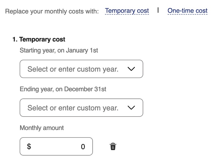 If you give just one number as your estimated expenses in retirement, the planning tool assumes it’ll be that number every year, adjusted for inflation. It’s adequate if you’re far away from retirement, but it’s probably too simplistic when you’re close to retirement or already retired.