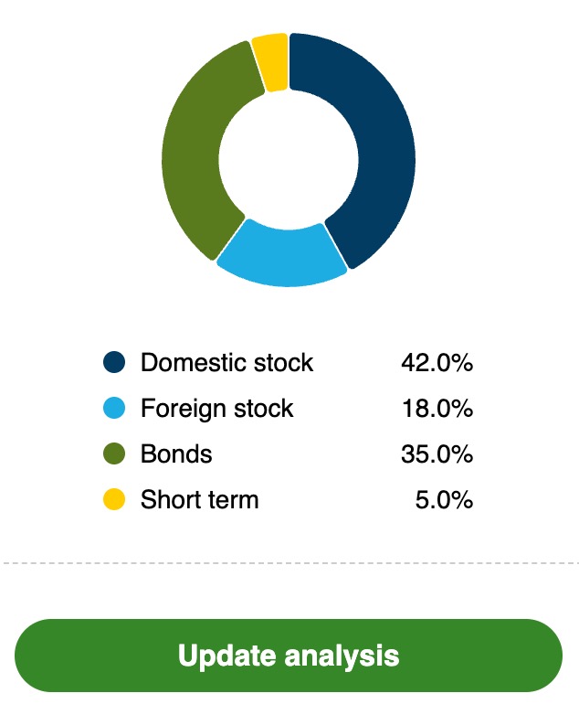 After selecting a target mix, click on “Update Analysis” to see how it affects your projections.